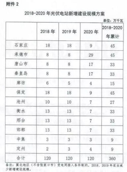 近日,河北省發(fā)展改革委發(fā)布《關于2018-2020年風電、光伏發(fā)電項目建設指導意見》,《意見》中明確,光伏電站將累計新增360萬千瓦。