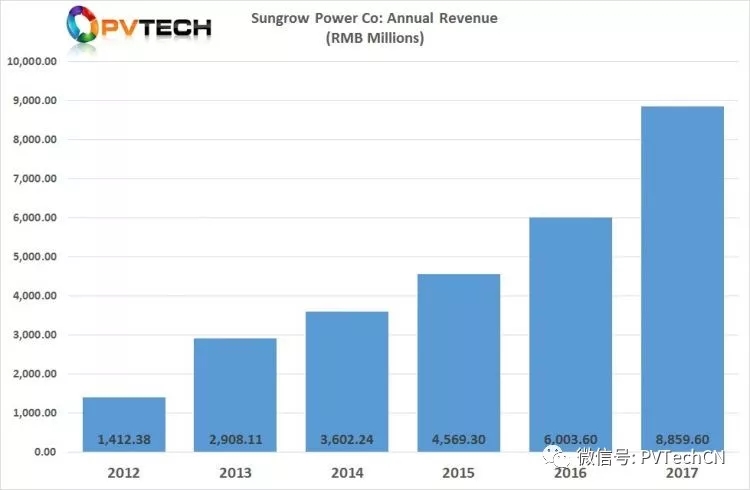 公司表示, 2017年中國(guó)光伏裝機(jī)量達(dá)到創(chuàng)紀(jì)錄的53GW,這是公司營(yíng)收額達(dá)到最高值的原因,這并不令人驚訝。不過(guò),陽(yáng)光電源也表示,前一年海外市場(chǎng)拓展支持營(yíng)收增長(zhǎng)了47.57%。