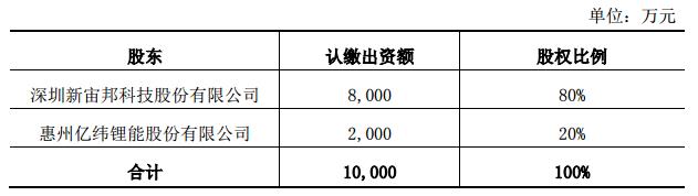 (一)惠州億緯鋰能股份有限公司(以下簡稱“公司”)擬與深圳新宙邦科技股份有限公司(以下簡稱“新宙邦”)共同出資設(shè)立荊門新宙邦電池材料有限公司(暫定,最終以工商登記主管部門核準(zhǔn)的公司名稱為準(zhǔn),以下簡稱“合資公司”)。合資公司注冊資本為人民幣10,000萬元,其中公司出資額人民幣2,000萬元,占注冊資本總額的20%。
