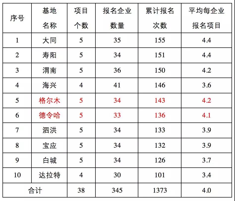 根據(jù)之前的統(tǒng)計(jì),很多企業(yè)幾乎報(bào)名了一個(gè)基地的所有項(xiàng)目,如下表所示。