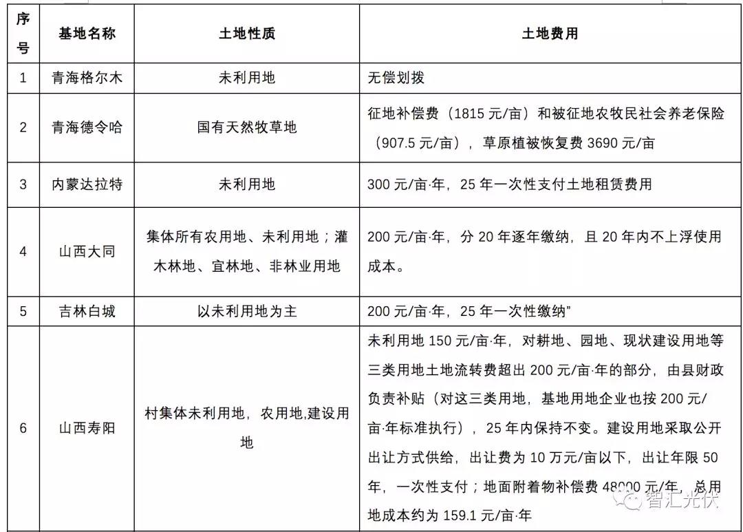 表1:第三批領(lǐng)跑者各基地的土地性質(zhì)及價(jià)格統(tǒng)計(jì)