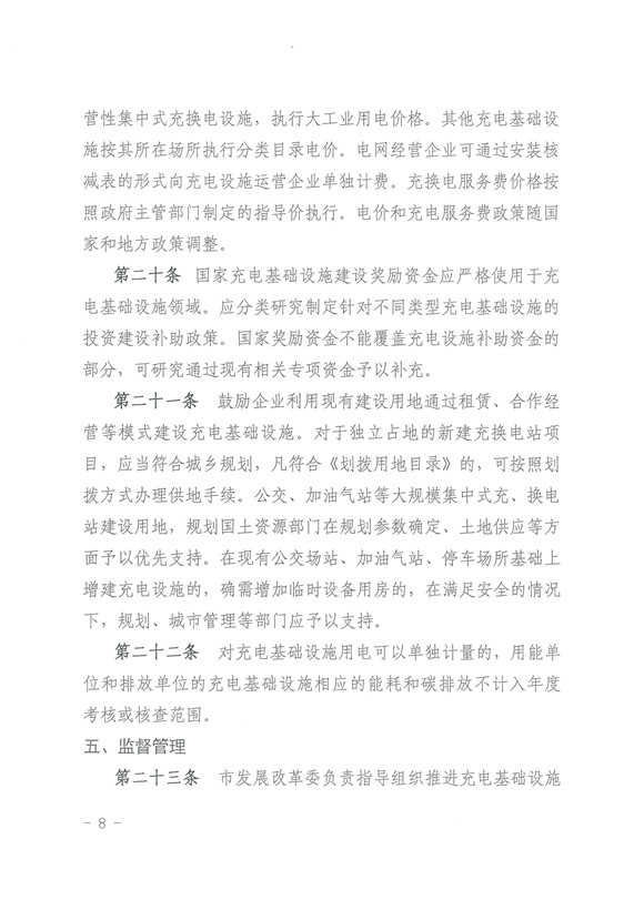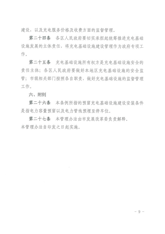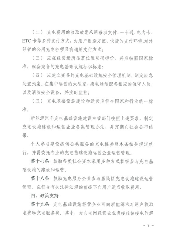 新建的大于2萬平方米的商場、賓館、醫(yī)院、辦公樓等大型公共建筑配建停車場和社會(huì)公共停車場,具有充電設(shè)施的停車位應(yīng)不少于總停車位的10%。新建公交場站應(yīng)配套建設(shè)充電設(shè)施。已建住宅小區(qū)、辦公類建筑、商業(yè)類建筑、社會(huì)停車場庫、出租車場站、醫(yī)院、學(xué)校、文體設(shè)施等場所要按照相關(guān)標(biāo)準(zhǔn)和要求建設(shè)充電基礎(chǔ)設(shè)施。鼓勵(lì)在具務(wù)條件的加油、加氣決以及高速公路服務(wù)區(qū)按照相關(guān)標(biāo)準(zhǔn)或要求建設(shè)充電基礎(chǔ)設(shè)施。鼓勵(lì)結(jié)合路燈設(shè)施的建設(shè)和改造,創(chuàng)新方式建設(shè)充電基礎(chǔ)設(shè)施,建設(shè)、交通、市容及電力等有關(guān)部門應(yīng)支持配合。
