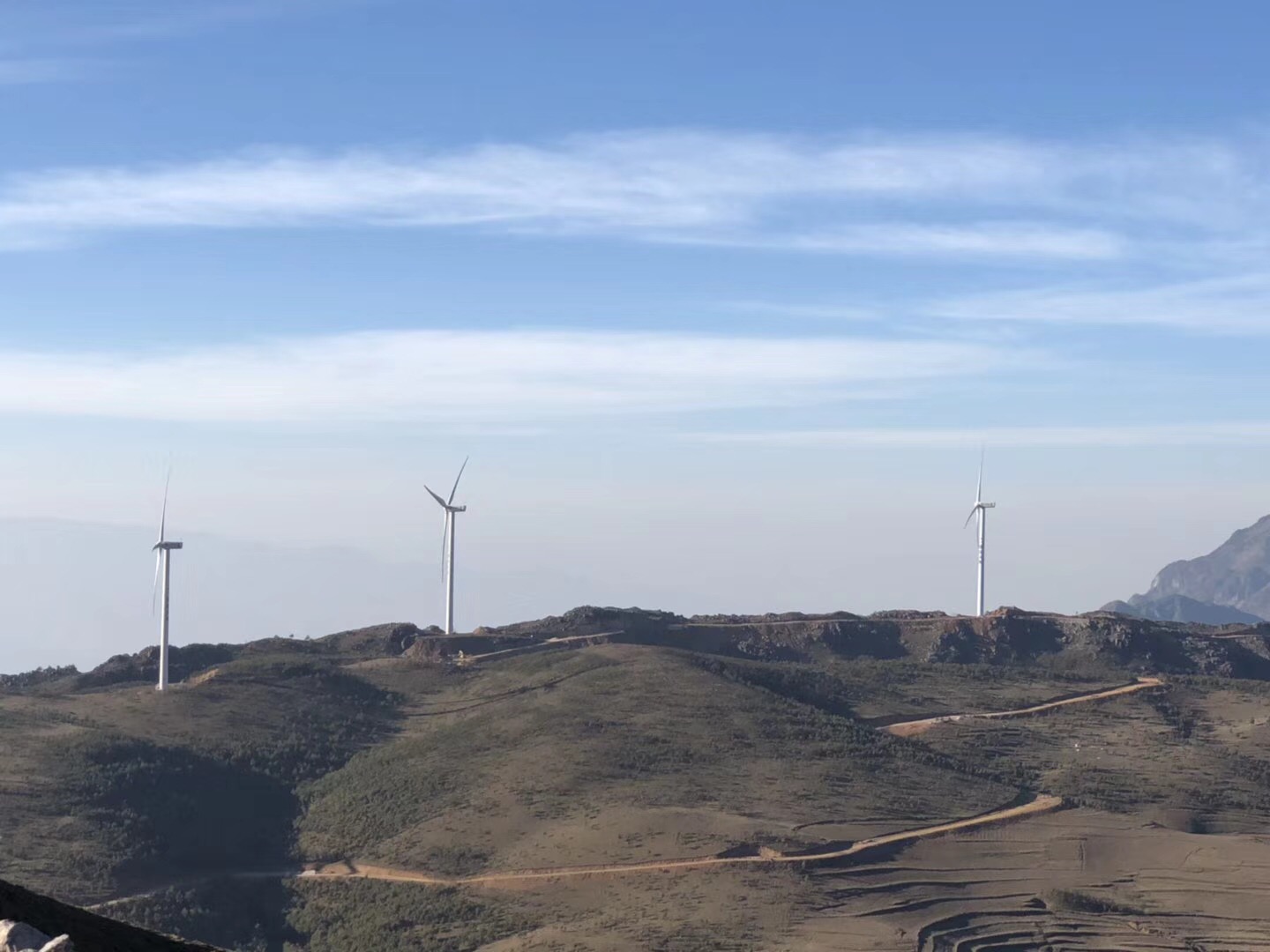 該風(fēng)電場(chǎng)位于云南省昆明市東川區(qū)東南部銅都都鎮(zhèn)野牛村的山脊頂部平均海拔3200米,屬于高山峽谷地貌、暖溫帶山地季風(fēng)濕潤(rùn)氣候。冰凍、大霧、缺氧等惡劣環(huán)境也給現(xiàn)場(chǎng)作業(yè)人員帶來了很大的挑戰(zhàn)。地處偏遠(yuǎn)、高原反應(yīng)等都讓給大家生活工作帶來很大的困難。