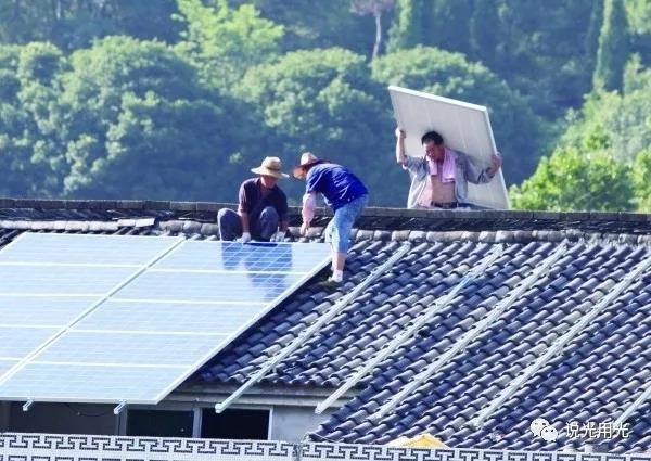 但今年張家村卻不一樣了,原因在于村民房子屋頂正在安裝的光伏發(fā)電系統(tǒng)。安裝在屋頂上的光伏組件,可以吸收80%的光照熱量,這部分熱量聚集在光伏電池板上,通過(guò)熱傳道到下面的瓦片上,而不是太陽(yáng)光直接照在瓦片上。此外屋頂安裝光伏發(fā)電系統(tǒng)對(duì)建筑物還有隔熱保溫作用,特別是在夏天高溫和冬天溫度很低的情況下,對(duì)于兩層房子的降溫作用更為明顯,這相當(dāng)于在屋頂上又加了一塊厚厚的窗簾。