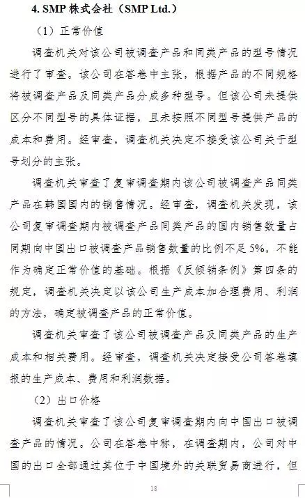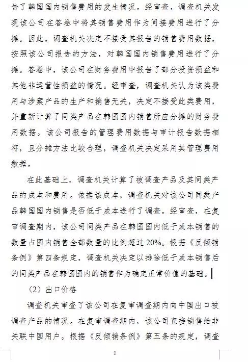 經(jīng)調(diào)查,商務(wù)部裁定,在本次復(fù)審調(diào)查期內(nèi),被調(diào)查產(chǎn)品存在傾銷。