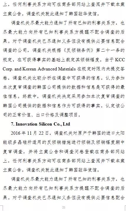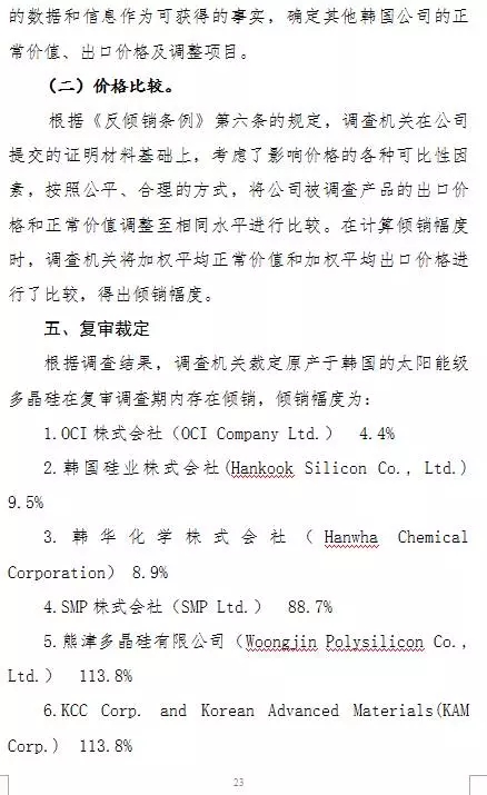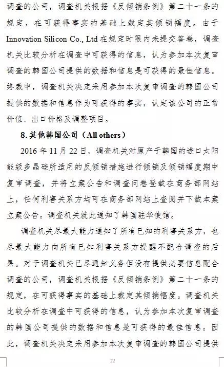 附件:中華人民共和國商務(wù)部對原產(chǎn)于韓國的進口太陽能級多晶硅傾銷及傾銷幅度期中復(fù)審的裁定
