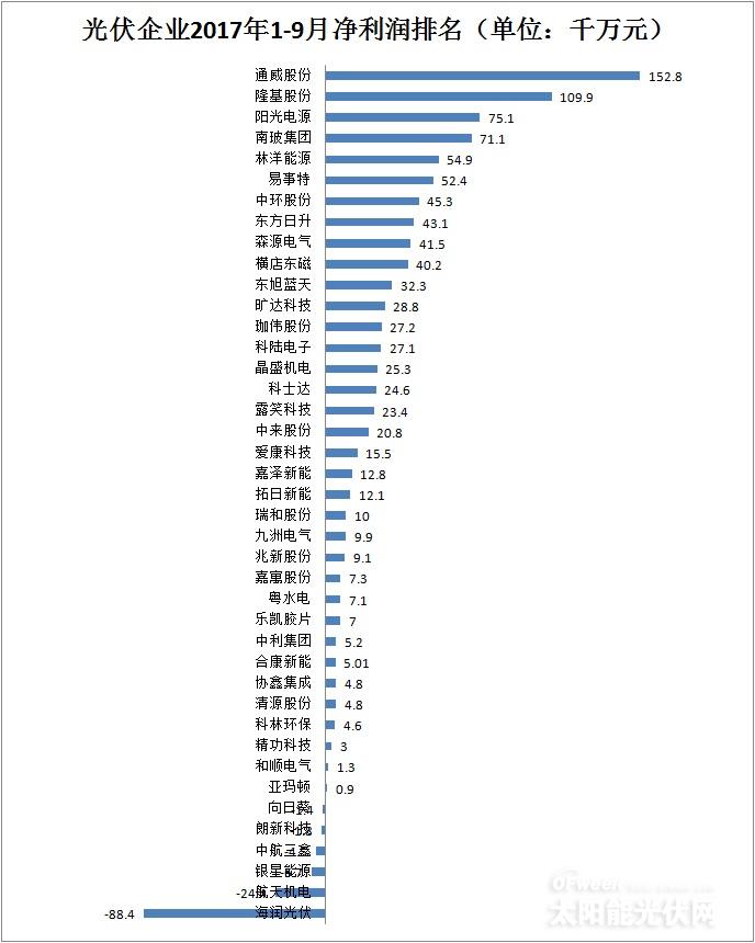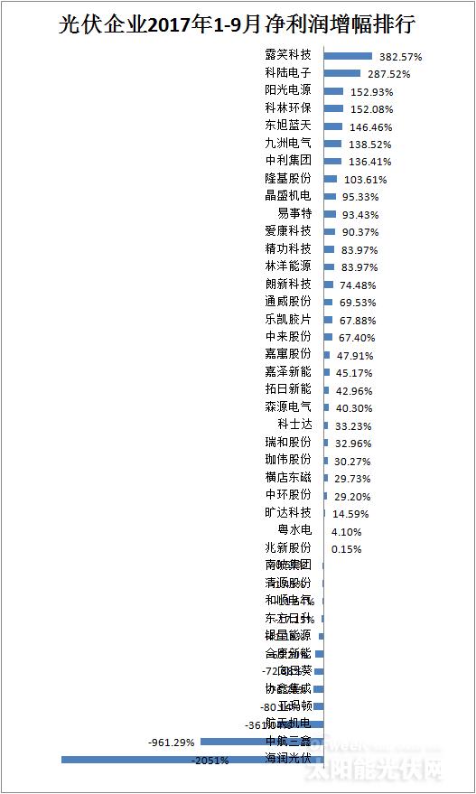 二、光伏企業(yè)2017年前三季度凈利潤及增幅排行榜