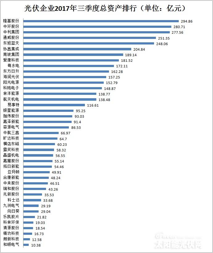 光伏企業(yè)2017年前三季度總資產(chǎn)排行