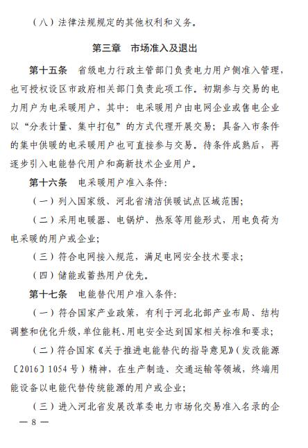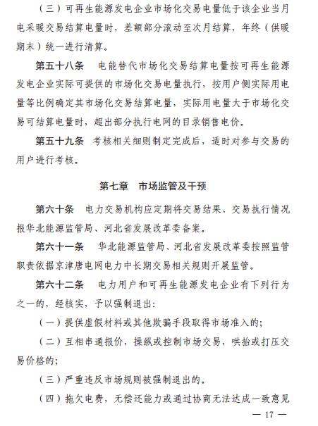 規(guī)則中稱,進(jìn)入可再生能源市場化交易的電力用戶應(yīng)保持相對穩(wěn)定,不得隨意進(jìn)出市場。采暖季期間,電采暖用戶原則上全部電量進(jìn)入市場,取消目錄電價(jià)。