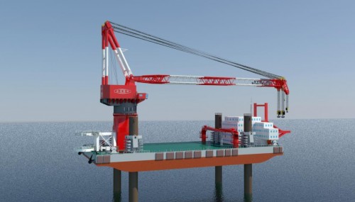 該平臺(tái)是振華重工自主研發(fā)、設(shè)計(jì)、制造的集大型設(shè)備吊裝、風(fēng)電設(shè)備打樁、安裝于一體的風(fēng)電施工平臺(tái)。船長(zhǎng)100.8 米,型寬43.2 米,型深8.4米,起重能力達(dá)2000噸,為全球最大,在此之前,全球自升式風(fēng)電安裝平臺(tái)的最大起重能力為1500噸;該平臺(tái)的雙鉤、單鉤起重能力能達(dá)到1500噸,可實(shí)現(xiàn)大兆瓦海上風(fēng)機(jī)基礎(chǔ)的空中翻身;平臺(tái)上的起重機(jī)起升高度達(dá)120米,在目前全球自升式風(fēng)電安裝平臺(tái)中,擁有最高的吊高高度。最大作業(yè)水深達(dá)到50米,開(kāi)創(chuàng)國(guó)內(nèi)之最,是我國(guó)海上風(fēng)電作業(yè)從淺海走向近海的關(guān)鍵利器。