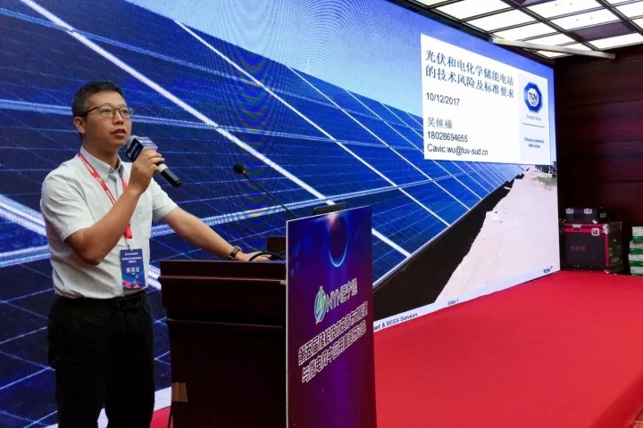 TüV南德大中華區(qū)南區(qū)光伏及儲能事業(yè)部資深項目經(jīng)理吳候福先生針對 “光伏+電化學儲能電站技術風險和安全要求” 作主題演講