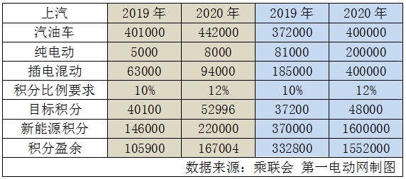 根據(jù)上汽規(guī)劃,2020年乘用車(chē)銷(xiāo)量為100萬(wàn),其中新能源車(chē)60萬(wàn)輛。如果按照從2016年到2020年每年以一定增速穩(wěn)步遞進(jìn),那么2019-2020年上汽將產(chǎn)生大量新能源正積分。