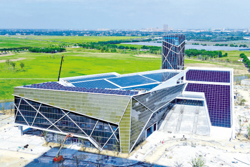 中國儲能網(wǎng)訊:位于秀洲高新區(qū)的秀洲光伏科技館即將完工。被譽為“光伏小鎮(zhèn)客廳”的科技館整體建筑采用超大面積、高透光率的光伏幕墻技術(shù),滿足采光和發(fā)電需求,是國內(nèi)光伏建筑一體化標桿性項目。光伏科技館將成為光伏知識普及、新能源教育、光伏企業(yè)產(chǎn)品展示和推介場所。