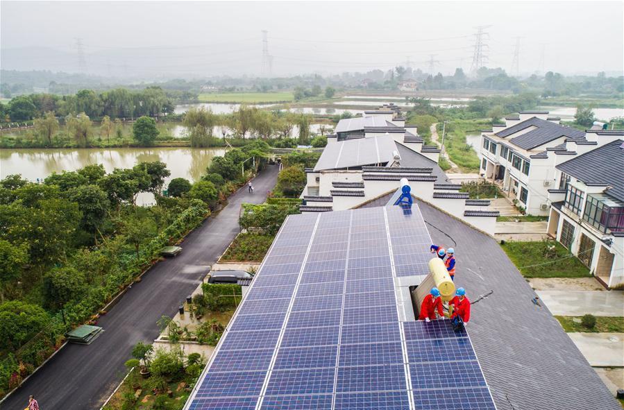 中國(guó)儲(chǔ)能網(wǎng)訊:9月27日,在浙江省長(zhǎng)興縣林城鎮(zhèn)北湯村,工作人員在對(duì)當(dāng)?shù)貏倓偨ǔ傻奈蓓敼夥M(jìn)行并網(wǎng)驗(yàn)收。2017年初,浙江省長(zhǎng)興縣林城鎮(zhèn)提出“統(tǒng)一規(guī)劃、統(tǒng)一設(shè)計(jì)、統(tǒng)一施工、整村推進(jìn)、惠民到家、長(zhǎng)效服務(wù)”的光伏村建設(shè)模式,把北湯村作為農(nóng)村光伏發(fā)電示范建設(shè)村,預(yù)計(jì)到2017年底,北湯村500余戶居民光伏將全部并網(wǎng),總發(fā)電容量將超過(guò)6000千瓦。