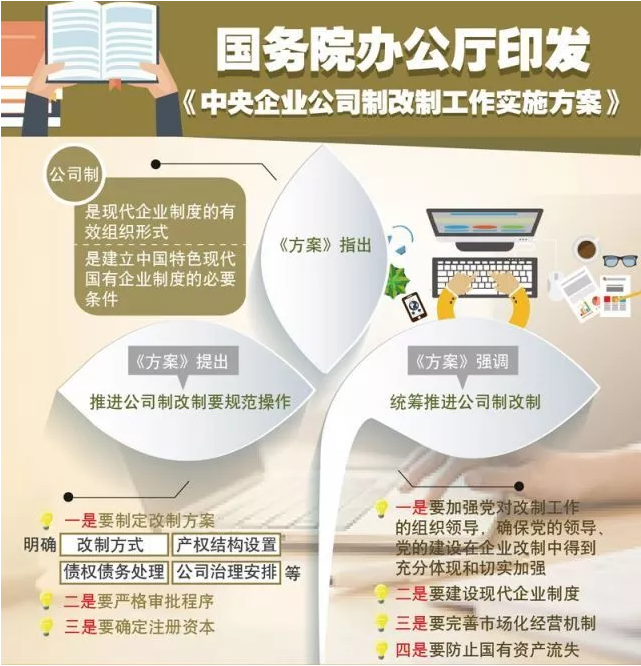 2017年7月26日,國(guó)務(wù)院辦公廳印發(fā)《中央企業(yè)公司制改制工作實(shí)施方案》。