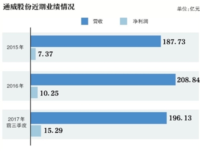 “2016年,公司逐步完成對(duì)通威集團(tuán)有限公司旗下光伏新能源產(chǎn)業(yè)的資產(chǎn)重組,實(shí)現(xiàn)向農(nóng)牧業(yè)及新能源雙主業(yè)的業(yè)務(wù)結(jié)構(gòu)轉(zhuǎn)型”,通威股份稱。