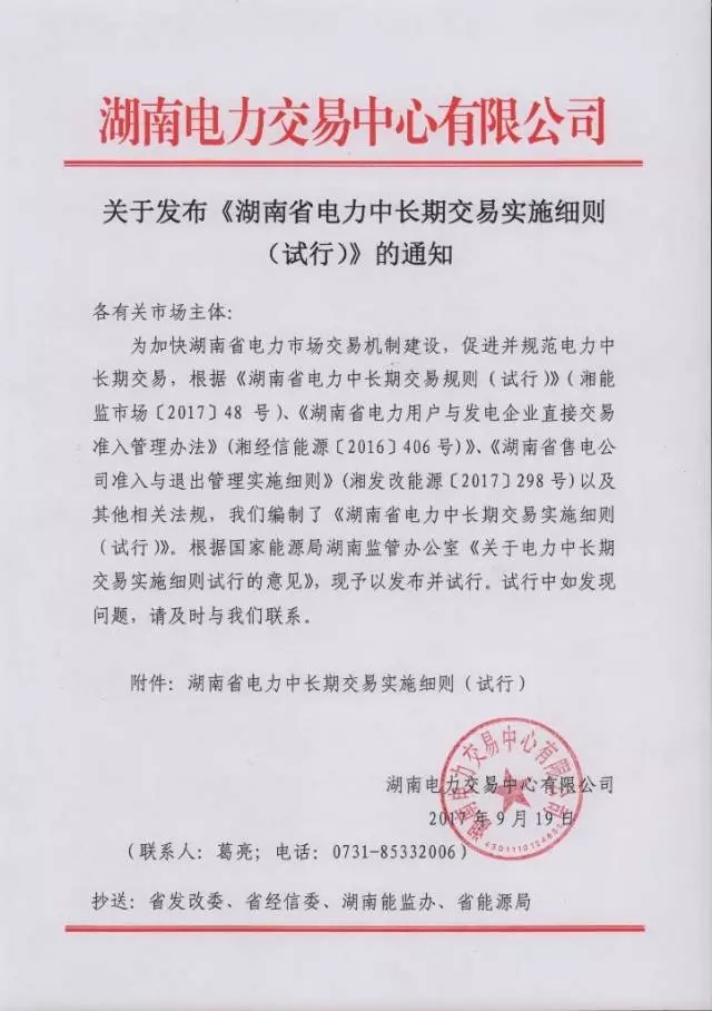 中國(guó)儲(chǔ)能網(wǎng)訊:9月19日湖南電力交易中心正式發(fā)布了《湖南省電力中長(zhǎng)期交易實(shí)施細(xì)則(試行)》,通知原文如下: