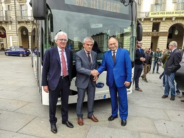 首批3臺大巴交付儀式在都靈卡斯特羅廣場舉行,皮埃蒙特大區(qū)主席Sergio Chiamparino,都靈市長Chiara Appendino以及當(dāng)?shù)毓贿\(yùn)營公司都靈運(yùn)輸集團(tuán)(GTT)董事長兼總裁Walter Ceresa等眾多政要和民眾領(lǐng)袖均到場見證。