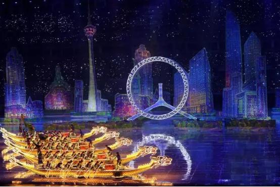 作為大型賽事的重頭戲,開(kāi)幕式的精彩程度向來(lái)不亞于任何一場(chǎng)焦點(diǎn)賽事。天津全運(yùn)會(huì)開(kāi)幕式在昵稱(chēng)為“水滴”的天津奧林匹克中心體育場(chǎng)舉行,將全程全屏激光投影與真人表演、場(chǎng)外建筑燈光秀進(jìn)行巧妙合成,成就了開(kāi)幕式展演的一次重大創(chuàng)新。