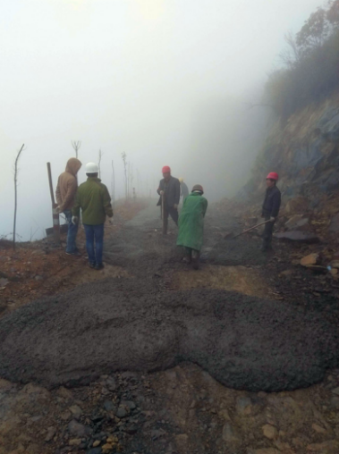 在取得這些成績的背后,付出的艱辛可想而知。每場大雨過后,項目部就組織人員去搶修道路,連續(xù)大雨的沖刷,道路邊坡一次次的沖垮,山崖上的松土、石塊時不時的出現(xiàn)滑落、塌方,施工單位不惜成本,投入大量人力物力進行搶修道路,保證運輸和施工的正常通行。材料進場也面臨巨大的挑戰(zhàn),項目部想辦法用裝載機拖拉硬拽,進行材料的二次倒運,使得材料及時進場。材料一到場,工人們就冒著細雨綁扎鋼筋,敷設(shè)電纜,似螞蟻搬家堅持不懈,一點點地推進工期。雖然遠遠沒有達到預(yù)期的目標和任務(wù),但是項目部積極地工作態(tài)度和種種努力,得到業(yè)主和監(jiān)理一致認可。