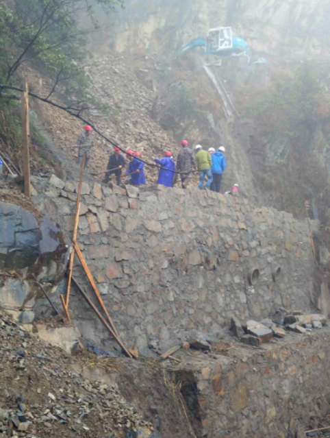劍河項目在施工期間,嚴格落實站班會制度,組織學(xué)習(xí)安全事故案例,為現(xiàn)場管理人員和施工一線員工一次次敲響警鐘,確保施工現(xiàn)場實現(xiàn)安全生產(chǎn)。由于項目地處貴州山區(qū)地帶,雨霧天氣影響嚴重,場內(nèi)道路多為土石路面,道路泥濘、濕滑,塌方、滑坡現(xiàn)象嚴重,時常有道路封堵,無法外出的情況。對此項目部專門成立道路安全通行小組,派專人對道路進行時時巡查,隨時修整,確保施工道路的正常通行。