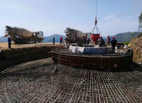 由于當(dāng)?shù)氐刭|(zhì)屬于風(fēng)化巖,地質(zhì)疏松,當(dāng)?shù)靥鞖狻疤鞜o三日晴”,除了大霧就是陰雨連綿,而對于施工企業(yè)來說,晴天是最好的施工機會。所以在每次風(fēng)機基礎(chǔ)澆筑前,項目部都是做好充分準備的。對現(xiàn)場的“人、機、料”進行合理分配、備足原材料以保證基礎(chǔ)澆筑的供應(yīng);對所有施工人員進行針對性的技術(shù)措施交底工作;對風(fēng)機基礎(chǔ)混凝土澆筑施工中質(zhì)量通病的嚴格控制。至此,施工現(xiàn)場未發(fā)生一次質(zhì)量事故。施工人員養(yǎng)精蓄銳,爭分奪秒,實施輪班作業(yè),克服機械和場地限制,努力提高施工效率。嚴格按照施工方案,倒排工期,確保工程進度有序推進。