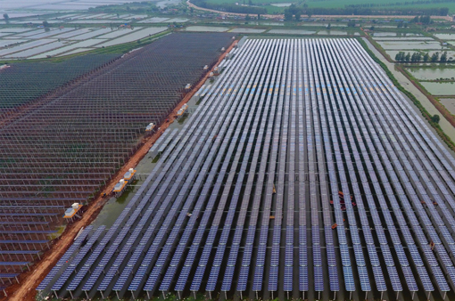 作為皖東地區(qū)規(guī)模最大的漁光互補光伏電站,華東院天長一期100MWp漁光互補光伏發(fā)電項目位于安徽省天長市高郵湖岸邊楊村鎮(zhèn)東大圩境內(nèi),占地面積3670畝。據(jù)悉,漁光互補光伏電站“上可發(fā)電,下可養(yǎng)魚”的獨特優(yōu)勢,不僅為高郵湖區(qū)域的能源產(chǎn)業(yè)開辟了一條新路,其1.2億度的年發(fā)電量更為當(dāng)?shù)亟?jīng)濟的快速發(fā)展提供了堅強可靠的用電保障,社會效益和經(jīng)濟效益顯著。