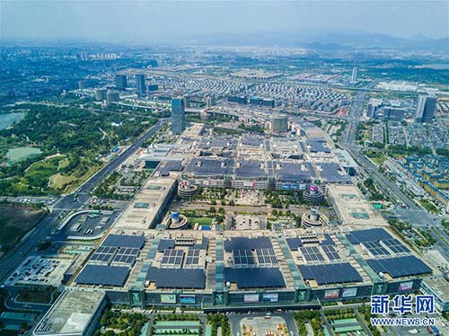 中國儲能網(wǎng)訊:8月29日,空中俯瞰義烏國際商貿(mào)城的屋頂光伏項目。當日,浙江省義烏市國際商貿(mào)城20兆瓦屋頂分布式光伏發(fā)電項目正式完工,將在9月初通過驗收后并網(wǎng)發(fā)電,實現(xiàn)了義烏小商品市場國際商貿(mào)城一至五區(qū)綠色光伏屋頂全覆蓋。該綠色節(jié)能環(huán)保項目建設于義烏市國際商貿(mào)城屋頂,總裝機容量20兆瓦,項目運行期為25年,所發(fā)電量在供給商貿(mào)城自用之后,富余電量將上網(wǎng)并入國家電網(wǎng)。