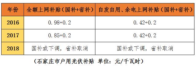 聽從經(jīng)銷商的建議,李大爺家選擇了全額上網(wǎng),這樣按照石家莊三類資源區(qū)光伏標(biāo)桿上網(wǎng)電價0.85元/千瓦時,再加上河北省級補(bǔ)貼0.2元/千瓦時,一度電能獲得1.05元的收益。