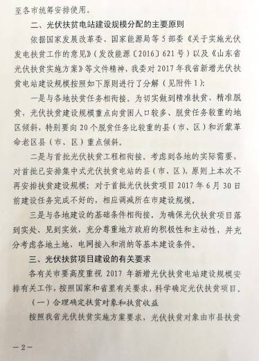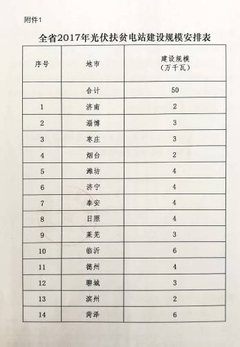 中國儲(chǔ)能網(wǎng)訊:日前,山東省發(fā)布《關(guān)于做好我省2017年光伏電站建設(shè)規(guī)模安排工作的通知》,明確2017年新增500MW指標(biāo)全部用于光伏扶貧,并將指標(biāo)劃分至各地級(jí)市,指標(biāo)向脫貧任務(wù)重的縣市區(qū)以及沂蒙革命傾斜。
