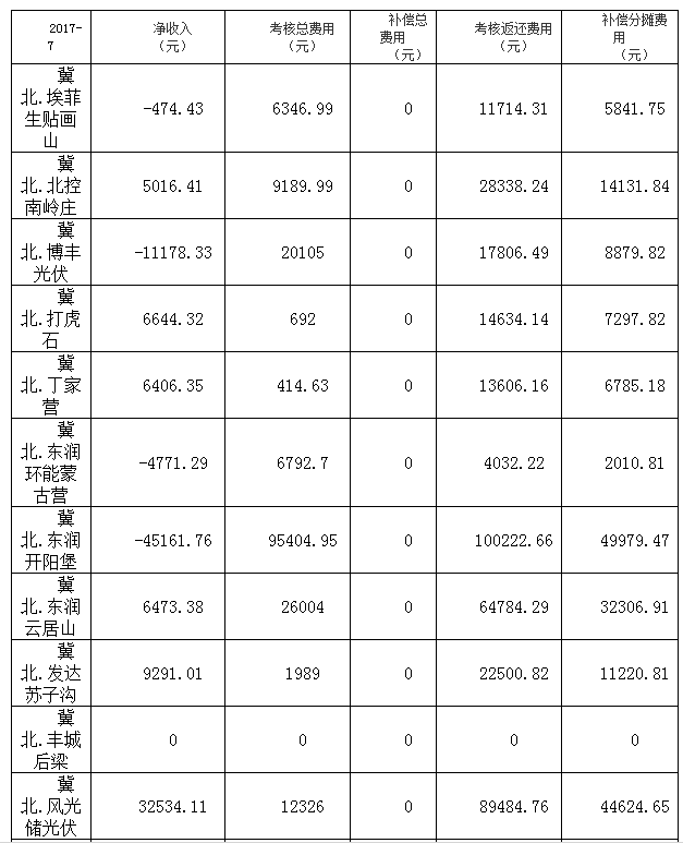 2017年7月京津唐光伏發(fā)電站并網(wǎng)運(yùn)行結(jié)算匯總表