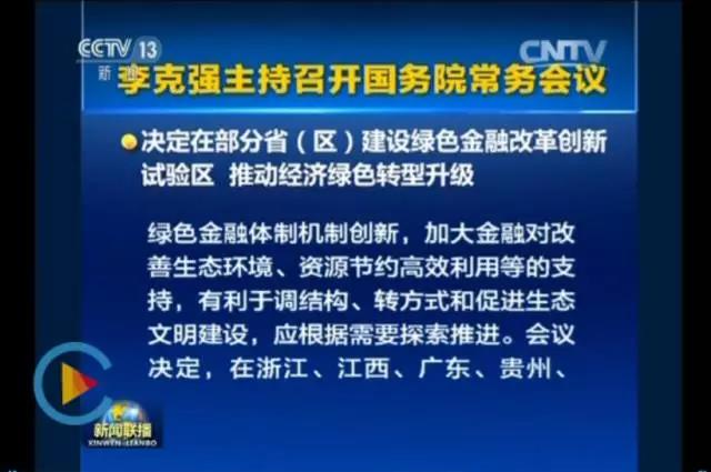 會議認(rèn)為,貫徹新發(fā)展理念,加快綠色金融體制機(jī)制創(chuàng)新,加大金融對改善生態(tài)環(huán)境、資源節(jié)約高效利用等的支持,對調(diào)結(jié)構(gòu)、轉(zhuǎn)方式,促進(jìn)生態(tài)文明建設(shè),具有重要意義,也是扎實(shí)履行中國政府對《巴黎協(xié)定》的承諾,應(yīng)根據(jù)需要突出重點(diǎn),有序探索推進(jìn)。會議決定,在浙江、江西、廣東、貴州、新疆5?。▍^(qū))選擇部分地方,建設(shè)各有側(cè)重、各具特色的綠色金融改革創(chuàng)新試驗(yàn)區(qū),在體制機(jī)制上探索可復(fù)制可推廣的經(jīng)驗(yàn)。主要任務(wù):一是支持金融機(jī)構(gòu)設(shè)立綠色金融事業(yè)部或綠色支行,鼓勵小額貸款、金融租賃公司等參與綠色金融業(yè)務(wù)。支持創(chuàng)投、私募基金等境內(nèi)外資本參與綠色投資。二是鼓勵發(fā)展綠色信貸,探索特許經(jīng)營權(quán)、項(xiàng)目收益權(quán)和排污權(quán)等環(huán)境權(quán)益抵質(zhì)押融資。加快發(fā)展綠色保險,創(chuàng)新生態(tài)環(huán)境責(zé)任類保險產(chǎn)品。鼓勵綠色企業(yè)通過發(fā)債、上市等融資,支持發(fā)行中小企業(yè)綠色集合債。加大綠色金融對中小城市和特色小城鎮(zhèn)綠色建筑與基礎(chǔ)設(shè)施建設(shè)的支持力度。三是探索建立排污權(quán)、水權(quán)、用能權(quán)等環(huán)境權(quán)益交易市場,建立企業(yè)污染排放、環(huán)境違法違規(guī)記錄等信息共享平臺,建設(shè)綠色信用體系。推廣和應(yīng)用電子匯票、手機(jī)支付等綠色支付工具,推動綠色評級、指數(shù)等金融基礎(chǔ)設(shè)施建設(shè)。四是強(qiáng)化財(cái)稅、土地、人才等政策扶持,建立綠色產(chǎn)業(yè)、項(xiàng)目優(yōu)先的政府服務(wù)通道。加大地方政府債券對公益性綠色項(xiàng)目的支持。通過放寬市場準(zhǔn)入、公共服務(wù)定價等措施,完善收益和成本風(fēng)險共擔(dān)機(jī)制。五是建立綠色金融風(fēng)險防范機(jī)制,健全責(zé)任追究制度,依法建立綠色項(xiàng)目投融資風(fēng)險補(bǔ)償?shù)葯C(jī)制。促進(jìn)形成綠色金融健康發(fā)展模式。