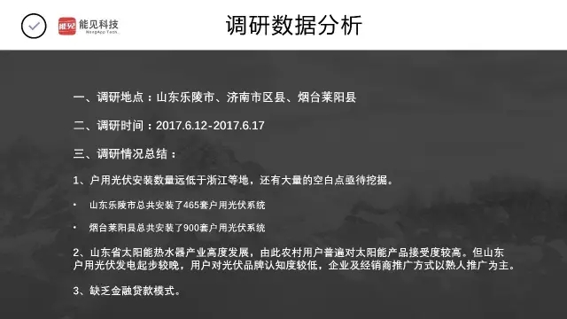 這是國(guó)內(nèi)第一次大范圍的戶用光伏調(diào)研,但由于調(diào)研時(shí)間有限,調(diào)研樣本有限,因此對(duì)市場(chǎng)的反映并不全面,甚至可能會(huì)有錯(cuò)誤之處。歡迎指出問(wèn)題,我們對(duì)報(bào)告進(jìn)一步完善之后,會(huì)將三省完整調(diào)研報(bào)告分享給業(yè)內(nèi)人士。