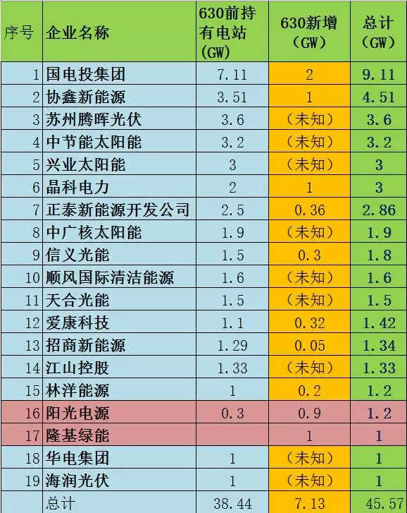 北極星太陽能光伏網(wǎng)根據(jù)公開數(shù)據(jù)及業(yè)內(nèi)媒體報道的630裝機情況,統(tǒng)計發(fā)現(xiàn),在這波630中,國電投、隆基、晶科、協(xié)鑫的新增裝機都超過了1GW。隆基、陽光電源更是借助這波630的搶裝,躋身GW電站投資俱樂部。具體統(tǒng)計結(jié)果如下: