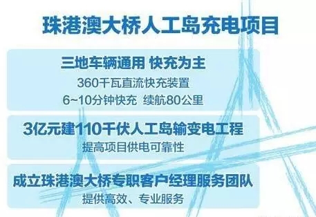 南網(wǎng)廣東公司相關(guān)負責人表示,“我們將高標準打造珠港澳大橋人工島充電示范項目,構(gòu)建更加開放自由便利的一體化電動汽車配套交通保障體系,為珠港澳3地進一步推廣電動汽車起到示范引領(lǐng)作用,有效促進社會綠色、低碳發(fā)展?!?