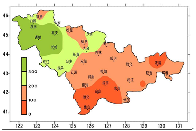 圖1.3-1吉林省太陽(yáng)能資源輻射分布圖