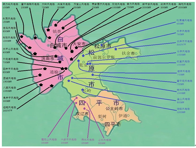 吉林省千萬(wàn)千瓦風(fēng)電基地規(guī)劃情況見(jiàn)圖1.1-3。