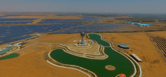 中國儲能網(wǎng)訊:4月27日,在騰格里沙漠南緣地帶,俯瞰全景,萬畝太陽能板綿延伸展,廣闊無垠,顯得尤為壯觀。中衛(wèi)市沙漠光伏產(chǎn)業(yè)園規(guī)劃面積6.5萬畝,分光伏制造產(chǎn)業(yè)區(qū)、光伏發(fā)電區(qū)、光伏農(nóng)業(yè)大棚區(qū)和觀光旅游區(qū)4個規(guī)劃區(qū)。產(chǎn)業(yè)園以發(fā)展光伏和沙漠治理、節(jié)水農(nóng)業(yè)相結(jié)合,實現(xiàn)了經(jīng)濟(jì)效益、社會效益、生態(tài)效益共贏,對中衛(wèi)治理沙漠環(huán)境和發(fā)展新能源產(chǎn)業(yè)都具有十分重要的意義。