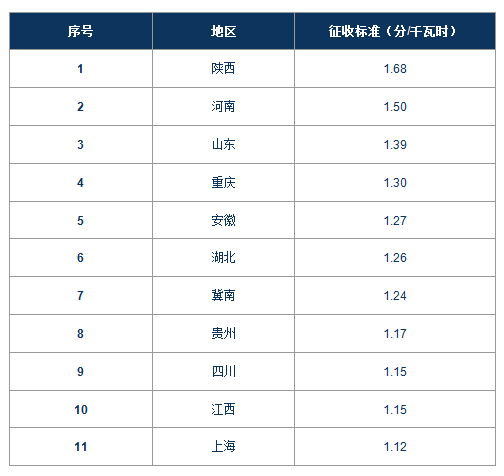 2)大中型水庫(kù)移民后期扶持基金,從2006年開(kāi)始征收,目前征收標(biāo)準(zhǔn)以0.83分/kWh為準(zhǔn),少部分貧困地區(qū)為0.19~0.55分/kWh;尚有部分地區(qū)征收地方水庫(kù)移民后期扶持資金,山東標(biāo)準(zhǔn)為0.05分。
