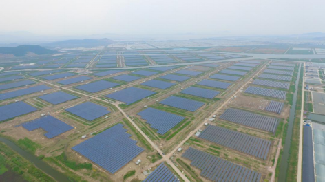 圖為三門灣現(xiàn)代漁業(yè)園區(qū)的蛇蟠涂光伏發(fā)電工程項(xiàng)目現(xiàn)場(chǎng)
