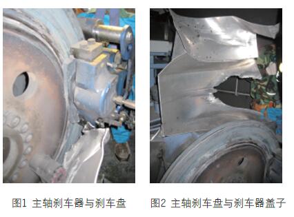 某風(fēng)電場,在中控室發(fā)現(xiàn)事故機(jī)組通訊中斷,到達(dá)現(xiàn)場后,葉片已回到92°限位開關(guān)位置。上機(jī)艙,如圖1、圖2 所示,主軸剎車片已完全磨損,剎車盤嚴(yán)重磨損,兩邊均有較深的磨痕,剎車器保護(hù)罩已部分燒熔,且嚴(yán)重變形;發(fā)電機(jī)側(cè)的柔性連接片已經(jīng)全部脫落,剎車盤與發(fā)電機(jī)之間的聯(lián)軸器掉落在機(jī)艙;主軸剎車器上方的機(jī)艙罩殼隔熱層燒灼嚴(yán)重;通訊滑環(huán)完全斷裂,并脫落在機(jī)艙內(nèi);發(fā)電機(jī)已從彈性支撐上嚴(yán)重移位,彈性支撐的固定螺栓絕大部分已經(jīng)斷裂,發(fā)電機(jī)轉(zhuǎn)子竄動嚴(yán)重。塔基變頻器處給機(jī)艙提供交流690V 的繼電器跳閘。