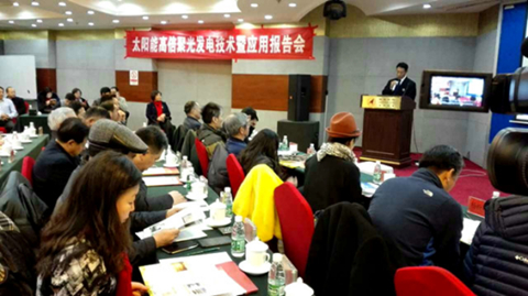 “太陽能高倍聚光發(fā)電技術(shù)專項委員會”主任委員、太陽能高倍聚光發(fā)電技術(shù)科學家楊向民同志,向在會專家做了“太陽能高倍聚光發(fā)電技術(shù)暨應用”技術(shù)報告。