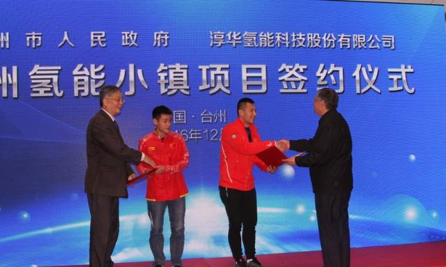 臺(tái)州市委副書(shū)記、市長(zhǎng)張兵與淳華氫能法人代表柳志偉簽署《臺(tái)州氫能小鎮(zhèn)項(xiàng)目建設(shè)合作協(xié)議》