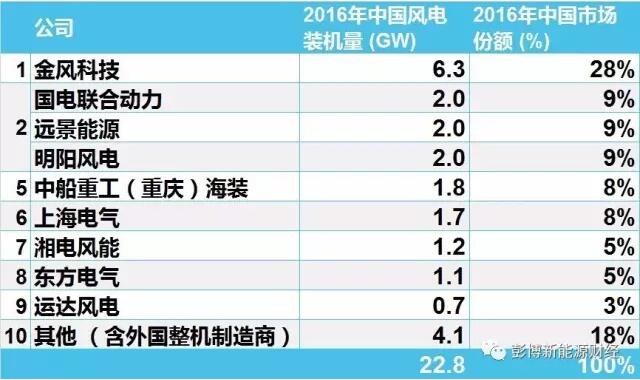 今年整機商排名順序較2015年沒有變化。最大的變化是,聯(lián)合動力、遠景能源、明陽風(fēng)電并列第二。