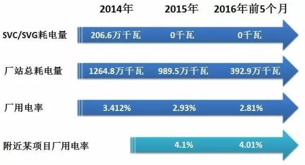 在2014年全年,上述項(xiàng)目SVC與SVG設(shè)備一年耗電量高達(dá)260.6萬度,如果粗略地以每度電0.5元計(jì)算,該項(xiàng)目在2014年因無功補(bǔ)償設(shè)施的運(yùn)行,產(chǎn)生了130.3萬元的成本。但在安裝使用了VMP后,其SVC和SVG設(shè)備完全處于“待機(jī)”狀態(tài),2015年全年集中無功補(bǔ)償?shù)膿p耗成本為零。該項(xiàng)目的場用電率也從2014年以前的3.412%降至2.93%,最新統(tǒng)計(jì)的2016年前5個(gè)月的場用電率僅為2.81%。同時(shí),SVC和SVG設(shè)備的運(yùn)維費(fèi)用每年也節(jié)省達(dá)到了數(shù)萬元。