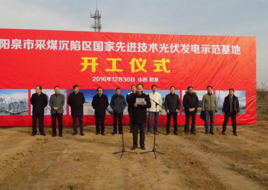 陽泉市采煤沉陷區(qū)國家先進(jìn)技術(shù)光伏發(fā)電示范基地項(xiàng)目2016年6月獲得國家能源局批復(fù),一期建設(shè)規(guī)模100萬千瓦,建設(shè)工期9個(gè)月,壽命期25年。主要利用采煤沉陷區(qū)、荒山荒坡、煤矸石山等土地建設(shè),涉及盂縣、郊區(qū)、平定縣3個(gè)縣(區(qū))。項(xiàng)目分13個(gè)單體項(xiàng)目,包括7個(gè)10萬千瓦、6個(gè)5萬千瓦和10個(gè)匯集站。項(xiàng)目總投資近100億元,項(xiàng)目投產(chǎn)后將年節(jié)約標(biāo)準(zhǔn)煤約48萬噸,減少二氧化碳排放量約152萬噸,年創(chuàng)造利稅近2億元,年解決當(dāng)?shù)厝丝诰蜆I(yè)約3000人。本項(xiàng)目在有效利用廢棄土地資源,促進(jìn)地區(qū)能源結(jié)構(gòu)改善,促進(jìn)光伏產(chǎn)業(yè)技術(shù)升級方面具有示范作用,并將推動陽泉市當(dāng)?shù)夭擅撼料輩^(qū)生態(tài)恢復(fù)、能源結(jié)構(gòu)轉(zhuǎn)型升級、優(yōu)化工業(yè)布局、改善環(huán)保形勢,助力實(shí)現(xiàn)黑色能源向綠色能源的轉(zhuǎn)變。