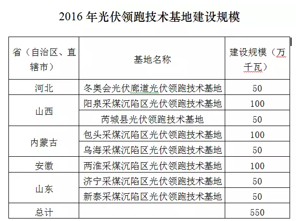 領(lǐng)跑者指標(biāo)2016年國(guó)家能源局下達(dá)光伏領(lǐng)跑技術(shù)基地規(guī)模550萬千瓦,同時(shí)明確光伏領(lǐng)跑技術(shù)基地應(yīng)采取招標(biāo)、優(yōu)選等競(jìng)爭(zhēng)性比選方式配置項(xiàng)目,而且應(yīng)將電價(jià)作為主要競(jìng)爭(zhēng)條件?;貎?nèi)單個(gè)光伏電站項(xiàng)目的建設(shè)規(guī)模原則上應(yīng)在10萬千瓦以上。