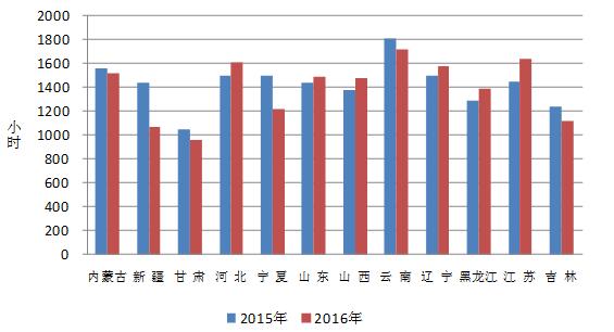 1-10月份風(fēng)電裝機(jī)較多省份風(fēng)電設(shè)備利用小時(shí)