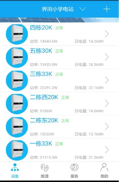 為了方便管理,一個(gè)帳號(hào)可以根據(jù)實(shí)際情況設(shè)置多個(gè)電站,余老板這邊是以村鎮(zhèn)或者片區(qū)為一個(gè)電站,目前共有9個(gè),以后還可以根實(shí)際情況增添,每一個(gè)電站下面有5-20臺(tái)逆變器,每一臺(tái)逆變器可以根據(jù)實(shí)際情況更改名稱,余老板把每一臺(tái)逆變器的功率都標(biāo)上??蛻糇铌P(guān)心的逆變器工作狀態(tài)、實(shí)時(shí)功率、每天發(fā)電量,就放在每一臺(tái)逆變器下面,如果哪一臺(tái)機(jī)有問題一目了然。下圖就發(fā)現(xiàn)有一臺(tái)30KW逆變器功率比20KW還低,再查一下這臺(tái)機(jī)輸入電壓和電流,發(fā)現(xiàn)有一路MPPT電流明顯偏低,后經(jīng)現(xiàn)場(chǎng)觀察,發(fā)現(xiàn)有兩路組串會(huì)被樹枝擋住,把一部分樹技修整了一下,這臺(tái)逆變器發(fā)電功率立即恢復(fù)正常。