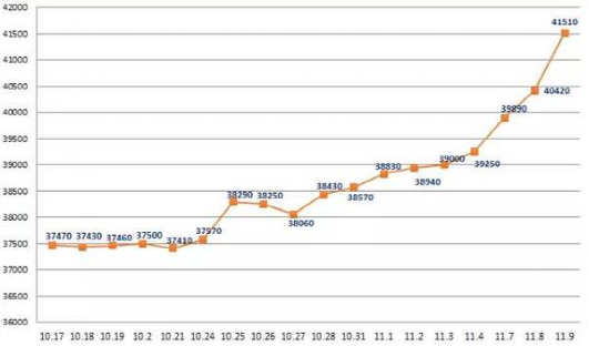 滬銅1612:41430元/噸,漲1100元/噸